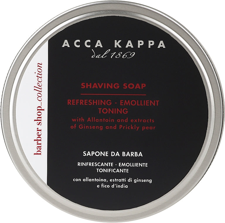I prodotti cosmetici di alta qualità aiuteranno a rendere la rasatura più confortevole. Le lame sono spesso irritanti a contatto con la pelle, quindi è importante scegliere un prodotto delicato che neutralizzi il disagio. Il marchio Acca Kappa ha realizzato un sapone da barba con un elevato contenuto di glicerina e di oli che gli conferiscono spiccate proprietà umettanti ed emollienti, facilita lo scorrimento della lama ed assicura una confortevole rasatura. L’estratto di ginseng ha proprietà tonificanti e rivitalizzanti, contribuisce a rendere la pelle più elastica e più luminosa, in modo particolare dopo che ha subito uno stress, come la rasatura, rendendola notevolmente più compatta e levigata. La menta piperita ed il mentolo donano un effetto piacevolmente fresco e balsamico. Non contiene SLS, parabeni, OGM, petrolati e PEG.